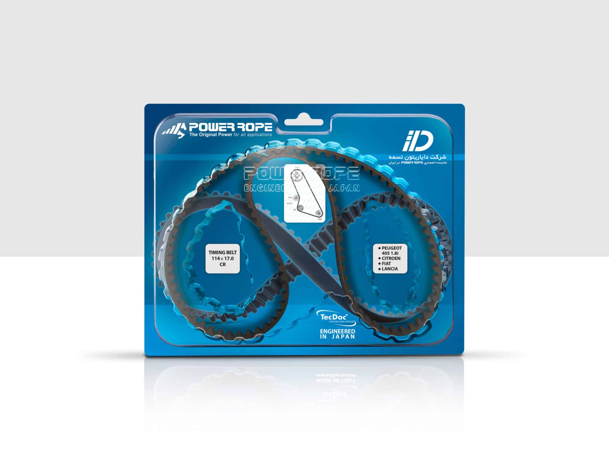 تسمه تایم ۱۱۴ دندانه پاور روپ، محصولی از برند معتبر پاورروپ آبی تحت لیسانس ژاپن است که برای خودروهای پژو 405، پژو پارس، کیا سراتو 1600، سمند و دیگر خودروهای مجهز به موتور XU7 طراحی شده است. تسمه تایم خودرو از قطعات حیاتی و حساس اتومبیل میباشد و این تسمه تایم با کیفیت بالا و مواد اولیه مرغوب، عملکرد دقیق و طولانی‌مدت موتور را تضمین می‌کند.